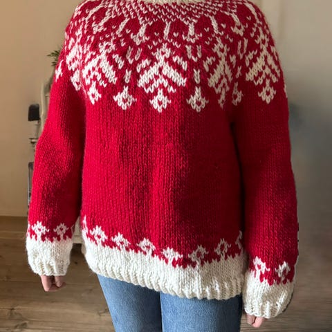 Hjemmestrikket genser fra Knitteriet selges.