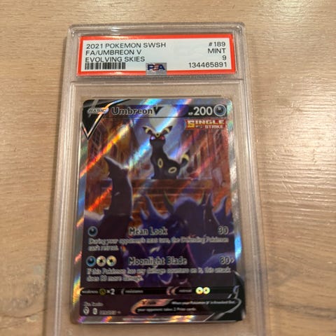 Lufter en av di råeste umbreonene som er å finne ! Vakker holo gradert psa 6. Har mye annet ute