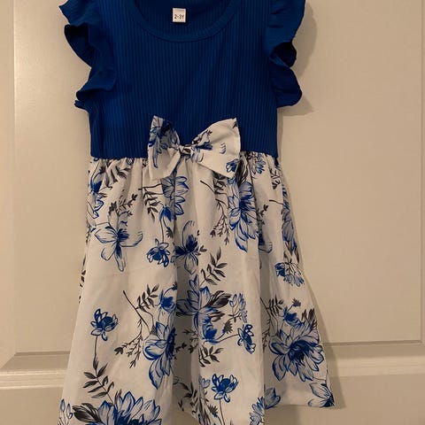 Søt og sommerlig kjole med jordbærmotiv og fin sløyfe i midjen.