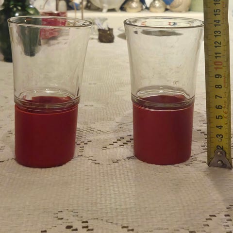 eb - erik bagger- drikkeglass/kaffeglass 31 cl. 4 × lilla og 4× mørkeblå i original eske. Glassene har stort sett stått i et skap, veldig lite brukt. Kan stables.