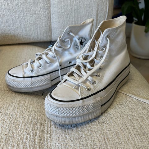 Lite brukt converse med platform, trenger seg en vask men kan fint vaskes i vaskemaskin, str 39, kjøpt for to år siden