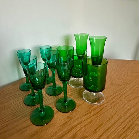 Vintage vinglass grønne 9 stk
