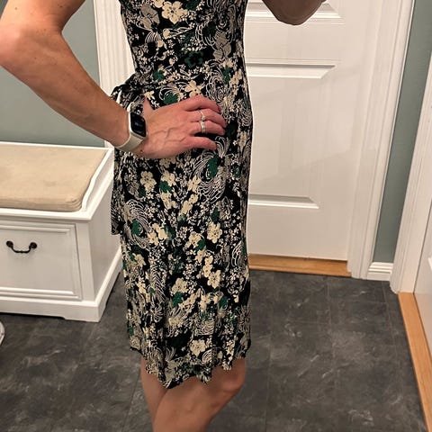 Flott sommerkjole str. 34/XS med søt utringning og splitt. Fra Shein. Kjolen er sval og fin med splitt og har en utringning med strikk som kan dras ned på skuldrene. Glidelås i ryggen.