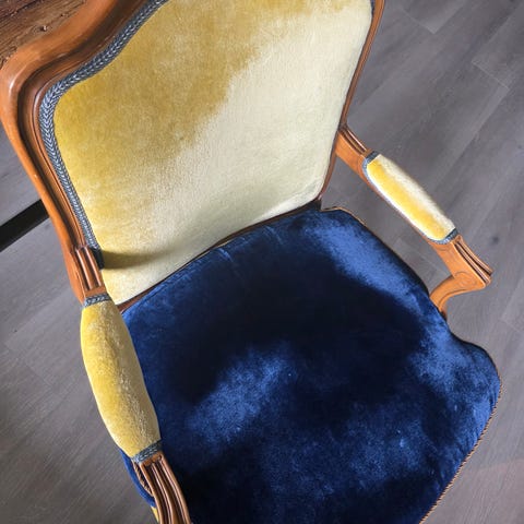 Selger en eldre stol som er meget pen og godt holdt uten skader i stoffet, stoffet er i fløyel. Kjøpte den selv for 5000 for 8 år siden og den har stått til pynt på en loftstue så ikke vært i bruk. Vurderer og selge videre da den tar litt plass. Selges for 4000. Selger ikke under pris.
