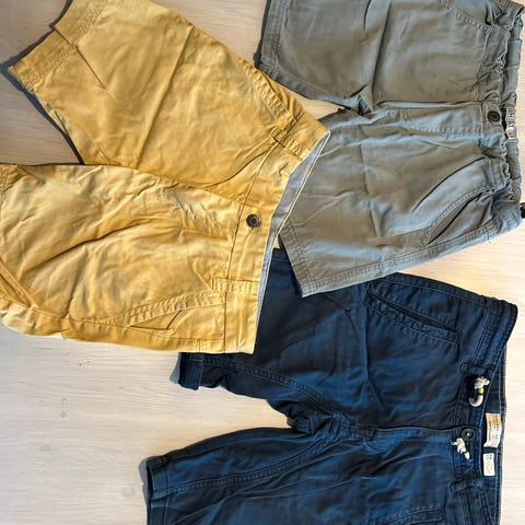 Selger to pent brukte bomullsshortser fr Levis og Timberland samlet. Shortsen fra Timberland er str 4 år, mens shortsen fra Levis er i str 5 år. Levis shorts er liten i størrelsen. Vil tenke at de passer barn fra 3,5-5 år.