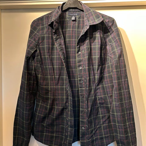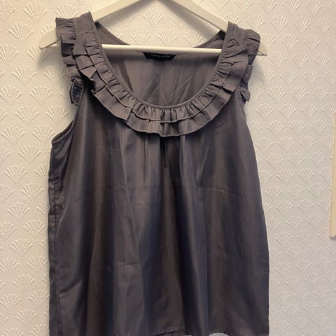 Pent brukt Tommy Hilfiger bluse str 12, tilsvarer ca str. 40. Marineblå med sorte detaljer. Polyester, faller meget pent. Lengde rygg 66 cm. Kan sendes mot porto.