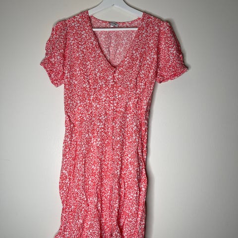 Søt rosa sommerkjole med små hvite blomster. Str. XXL fra Mango, men mer som en XL. Elastisk område bak på ryggen. Pent brukt.
