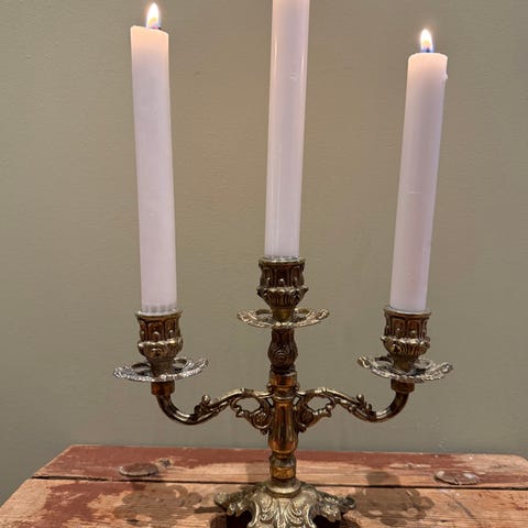 Hvitmalt 5-armet lysestake. Veldig dekorativ.