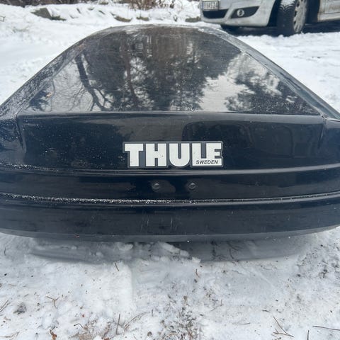 Selger pent brukt Thule takboks / skiboks med 4stk bøyler og det medfølger med to stk nøkler.