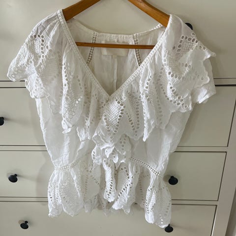 Pent brukt bluse i bomull med silke detaljer. Veldig god kvalitet.