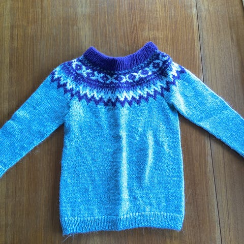 Ny strikket sort rose genser str 3-4 år til salgs.garn gann fauna