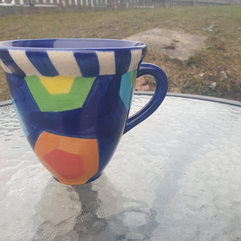 Flott keramikk sett bestående av 7 krus, 2 mugge