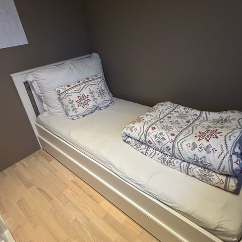Seng med madrass.