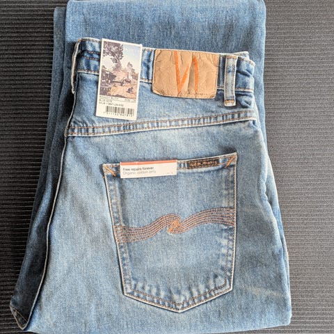 Ny og ubrukt Skinny lin fra Nudie i str 31/32. Denne inneholder 98% bomull og 2% elastan. Selges da den dessverre ikke blir brukt. Den selges til både dame og herre.