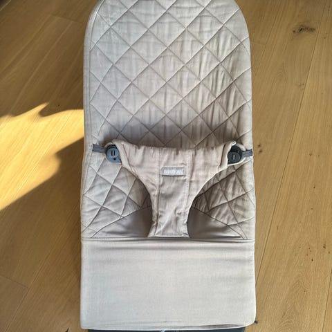 Lite og pent brukt BabyBjørn vippestol med leke. Trekket er nyvasket. Noen nupper foran som kan sees på siste bildet.