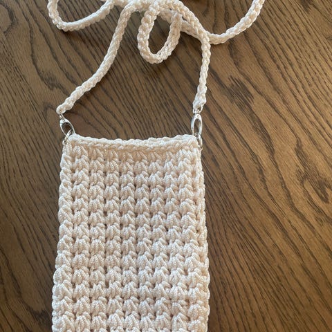 Veldig søt, middels stor heklet veske med plass til det man trenger om sommeren