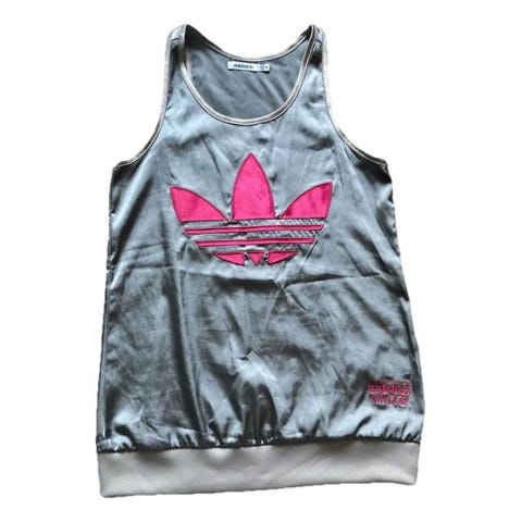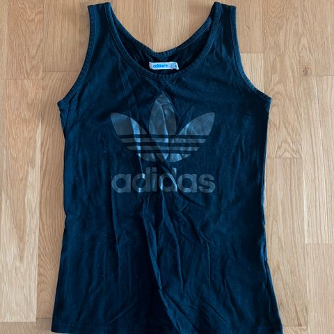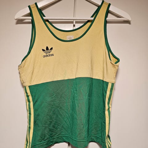 Vintage singlet Adidas Brasil. Knæsj blå med oransje striper. Mørke flekker under armen (se bilde)