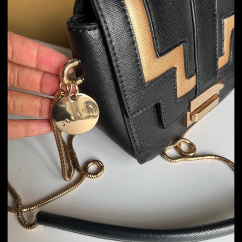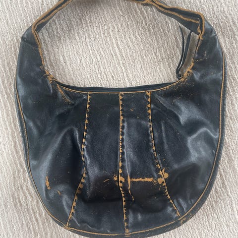 Sisley håndveske i robust sort kunstlær med justerbar skulderreim.