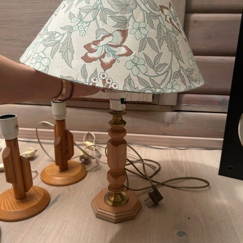 Lampe 1; 29 cm høy. Creme/lys grønn alabast/onyx med messingdetaljer. Sokkel er spraylakkert i matt gull. Alabast/onyx fot er limt av tidligere eier, se bilde. E27, stor sokkel. Pris 300kr.