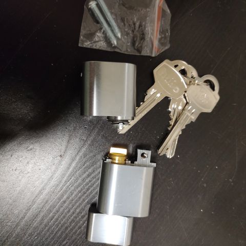 Kaba låsesylinder. Tre stk likelåsende med to nøkler. Ekstra dirkesikre.