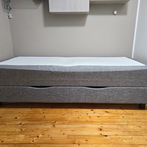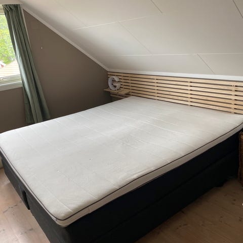 Seng selges grunnet flytting. Den er nå nylig satt på et lager i Ski, grunnet rask overgivelse av leiligheten. Den beste sengen jeg har hatt, noe som gjør det ekstra synd å måtte selge den. Sengegavl og overmadrass som ble kjøpt separat selges med.