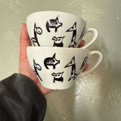 Fire retro tekopper i flotte grønnfarger. Diameter ca 9,5 cm. Noen svake bruksspor, men hele og pene. Pris er per stk. Kan sendes med PostNord for kr 69,-.