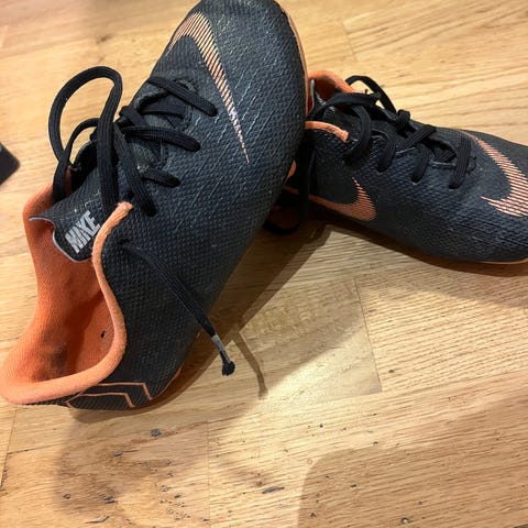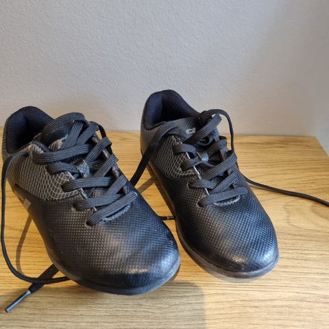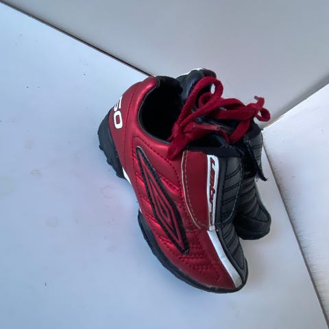 Selger et par pent brukte fotballsko i Umbro i strl 28. Elastisk snøring og borrelås fungerer utmerket på de minste!