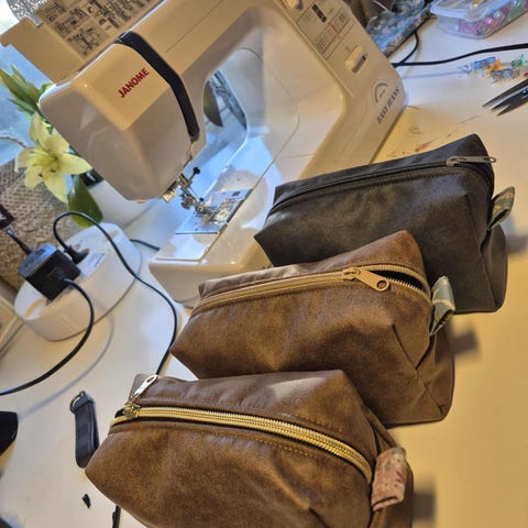 Uferdig T oalettveske i lappeteknikk som mangler glidelås. Størrelse 34x26x9 cm. Veldig pent arbeid. Kan sendes med PostNord for kr 69,-.