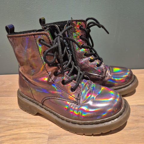 Superkule boots fra vty, kjøpt i Sveits. Str 30. Hvitt tykt fór øverst på kanten, lett fóret ellers inni skoen. De er nesten ikke brukt!
