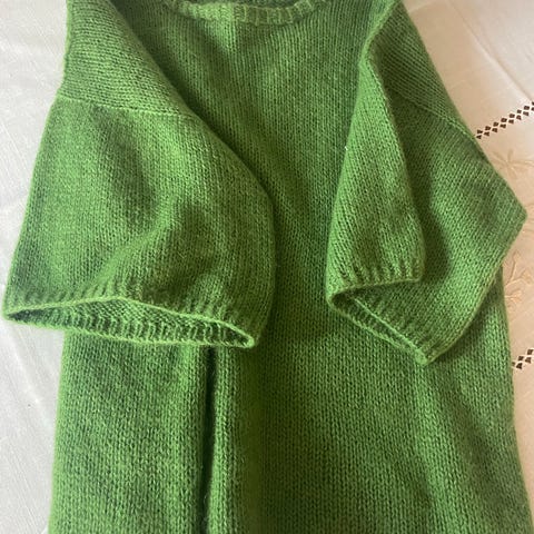 Lengre modell enn originalen. Strikket i Nepal og Mohair.