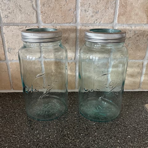 NY PRIS!!! 1 sett Norgesglass, det ene er nå solgt. 1 sett grønt glass, det minste blankt. 1 sett grønt glass, de to minste blanke. Disse er veldig dekorative både på benken med fargerik pasta eller som blomstervase, med lys i, som gave m/ eller uten innhold eller; hva du måtte ønske. Deriblant å hermetisere. Mange muligheter👍Se annonse. Jeg har så mange og vil derfor dele m/ noen andre🙂Deler ikke opp settene. Pris pr sett kr 250.- Må hentes. Men, mulig å sende m/ tillegg av fraktkostnad.