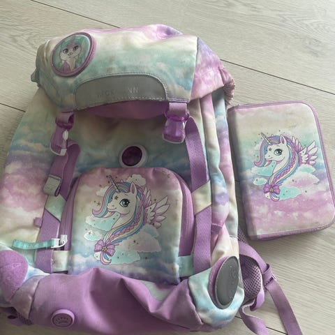 Skolesekk med regntrekk. Pent brukt.