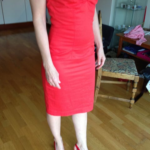 60 talls kjole kjøpt på løkka med dyp rød sko