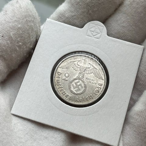 Høy kvalitet store sølv reichmark nazi mynt med hakekors.