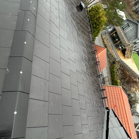 32 kvm BMI ANTRACITT FLATE TAKSTEIN MED CA.50 STK HALV OG HELE GAVLSTEIN. FULLPRIS 31 400,00