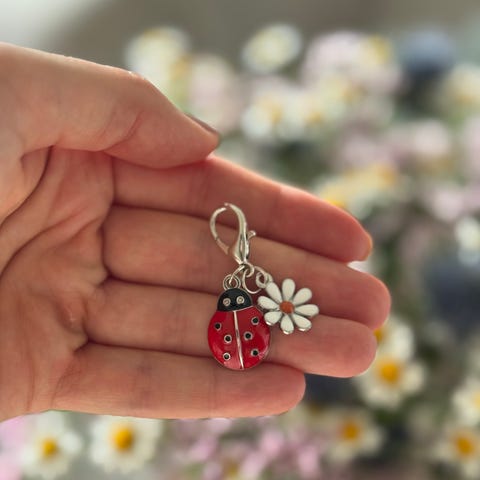 18 carat gull anheng charm med sapphire og diamanter