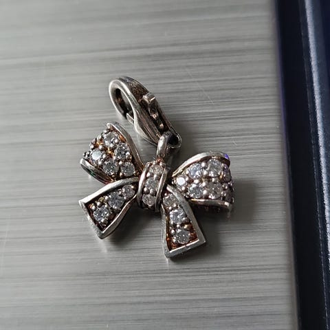 Meget vakkert eple-anheng laget av 18 karat italiensk hvitt gull dekorert med naturlige rosa og gule safirer og diamanter.