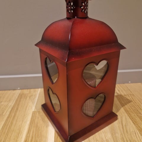 Følger med rød snor til å henge opp med.