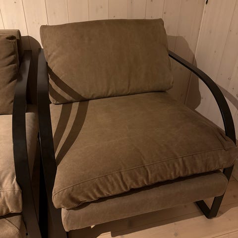To lenestoler med puff i svart velur. Fint brukt, ingen skader. God å sitte i. Selges helst samlet.