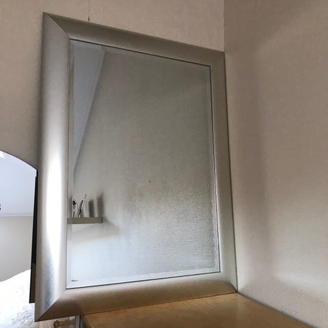 Fint avlangt speil i sølv. Str 58 cm x 98 cm.