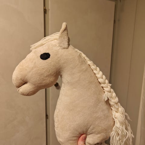 Helt ny kjepphest selges. Nettop sydd og ubrukt. Selges med fyll og kjepp. Noe utstyr kan følge med