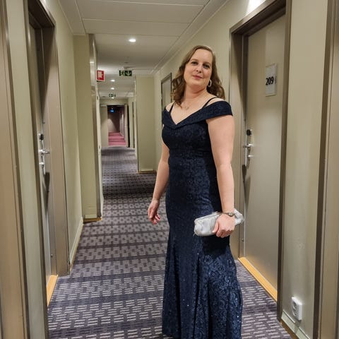 Veldig elegant sateng festkjole. Lengde: 93 cm.