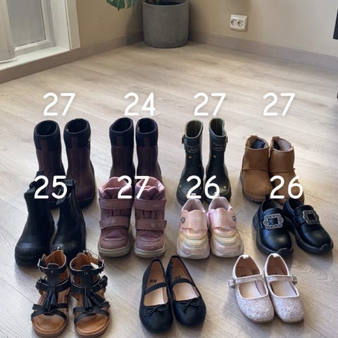 Mange nye/svært lite brukte jentesko. Størrelse på bilde. De som er lite/svært lite brukt selges hbo 200,- for alle