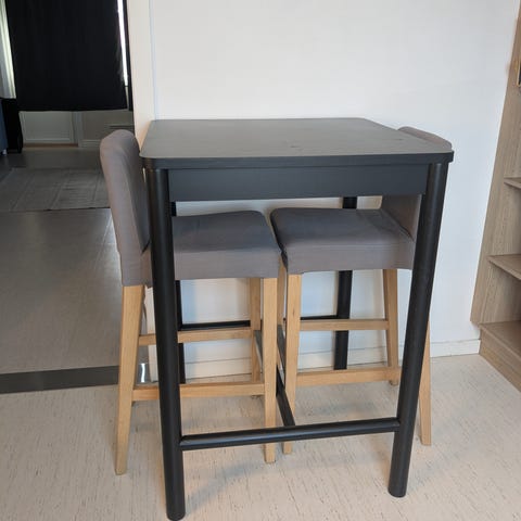Barbord i eik/glass 70x70 cm bordplate og 105 cm høyt .+ 2 barstoler