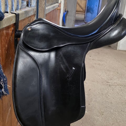 Pent brukt dressursal fra prestige i sort. Den er 33 i bomvidde og 16 i sete. Det er monoflap. Nypris ligger på 52000kr. Flere bilder kan sendes.