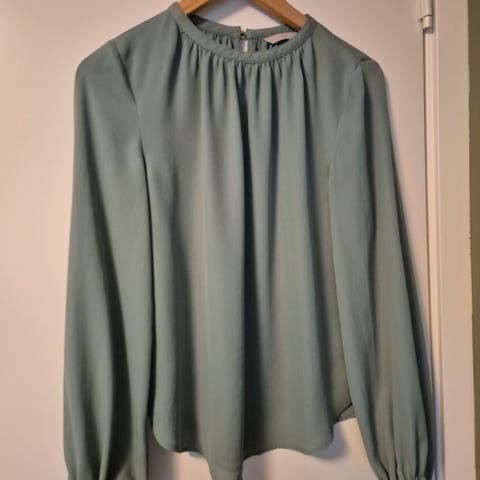Feminin og tidløs bluse med rysjer langs skuldrene og halsen. Lange ermer med strikkdetalj ved håndleddene. Perfekt til både hverdag og fest. Passer xs og s