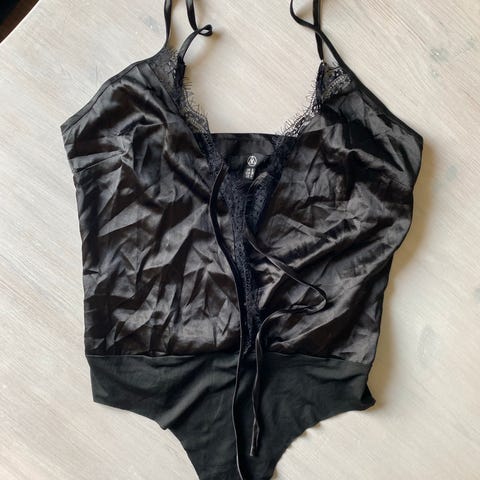 Blondebody i silkeaktig stoff, i sort med nydelige detaljer, fra Naanaa 🖤