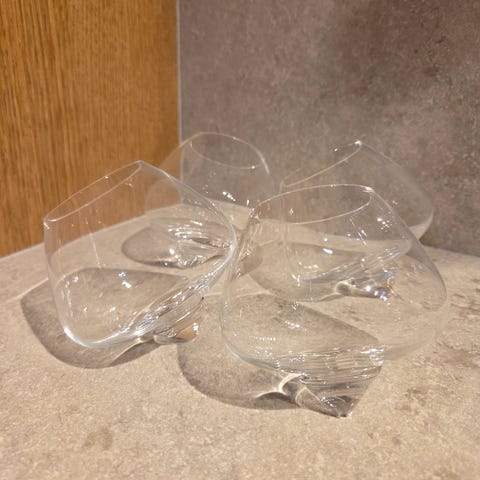 Kule cognacglass uten stett. Drikker altfor sjeldent cognac til at jeg kan forsvare å ha de.