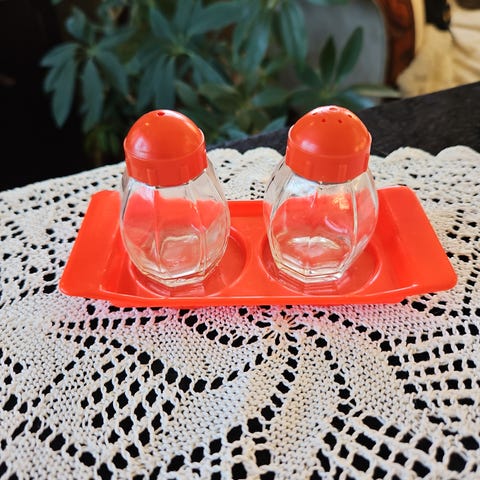 søte salt og pepper bøsser - 4 cm høye og brettet er 10 cm langt