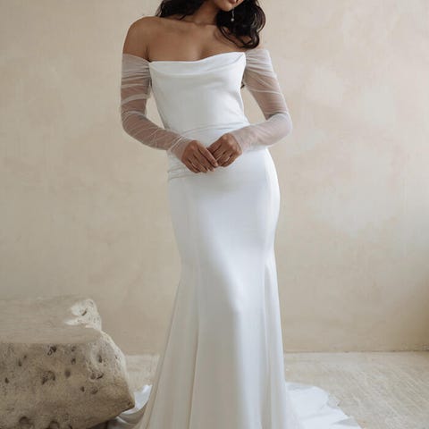 Selger en nydelig brudekjole fra Eva Lendel sin less is more 2021 kolleksjon. Kjolen selges ikke i Norge. Endte med å ikke bruke kjolen så den er ubrukt. Kjolen er renset. Den er i størrelse 38/40, er lagt ut helt i livet men kan syes inn. Passer lengden min, jeg er 173. Kjolen passer min høyde med litt hæl. Kan legges opp. Brystputene passer nok en c—e. Tror disse kan byttes hos skredder om det er nødvendig. Er villig til å diskutere pris ved seriøse henvendelser.